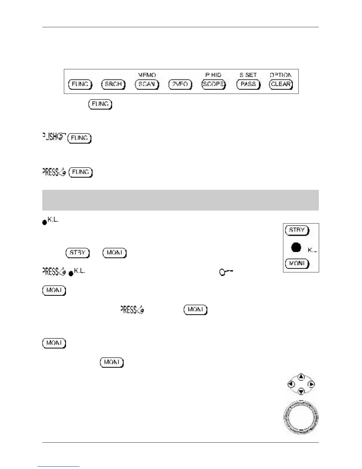 and VFO functions are actioned via this set of keys along with the FUNC and CLEAR operations.