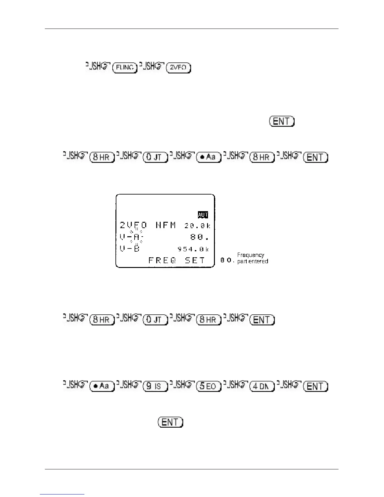 While keying in frequency data, the bottom line of the LCD displays “FREQ SET” to indicate what sort of