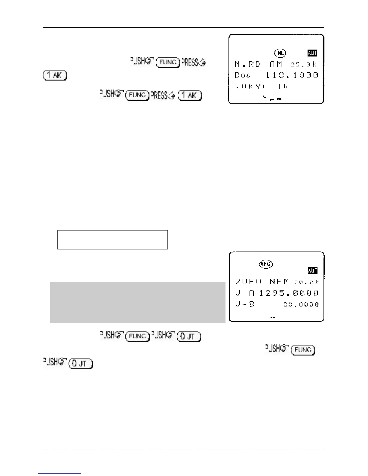The selection of AFC is held separately in each VFO, each memory channel and may also be toggled