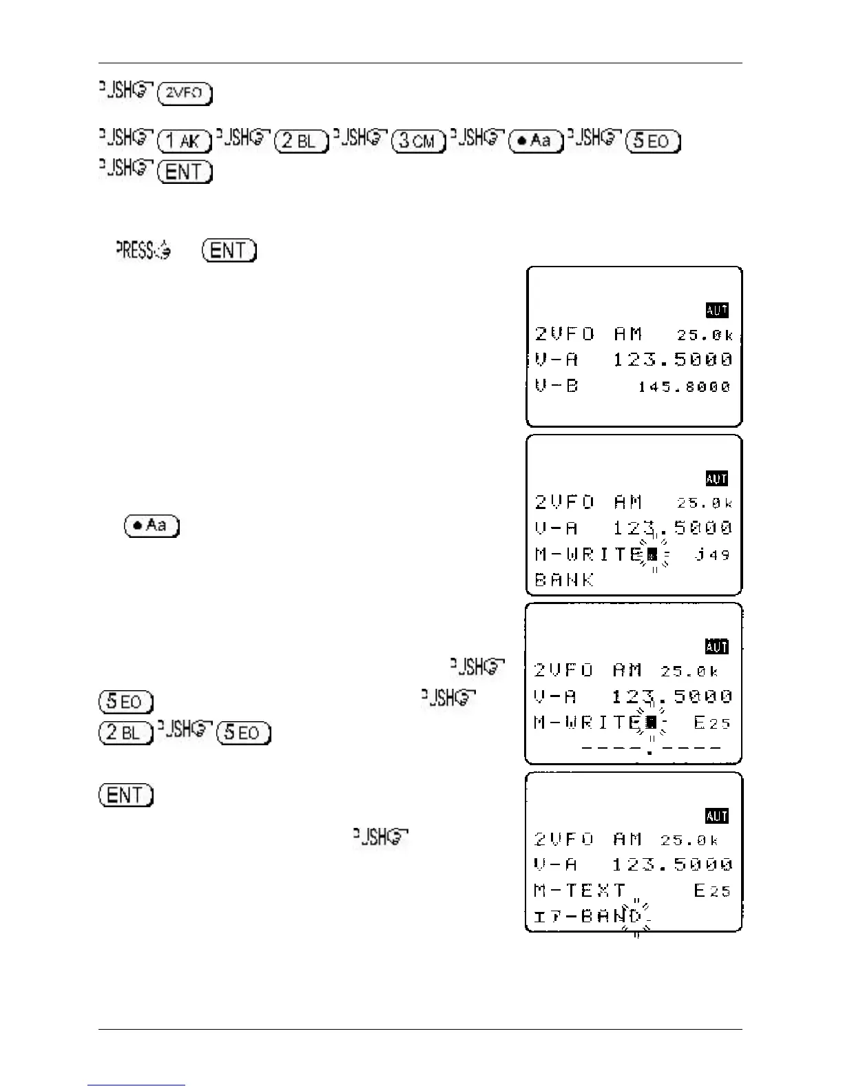 Assuming that you wish to store 123.500 MHz into “E25”