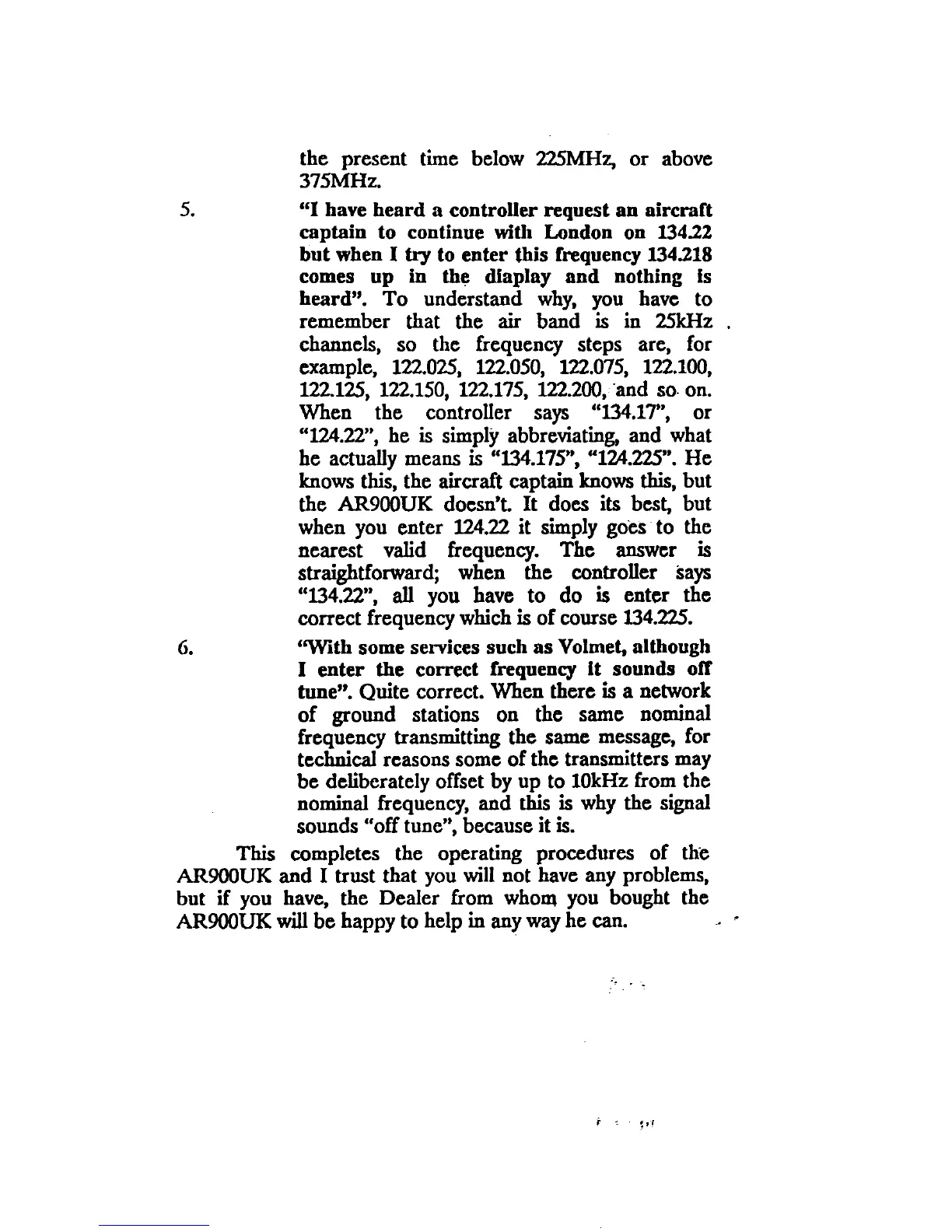 AOR AR900 - Frequency Programming Accuracy; Airband Frequency Entry