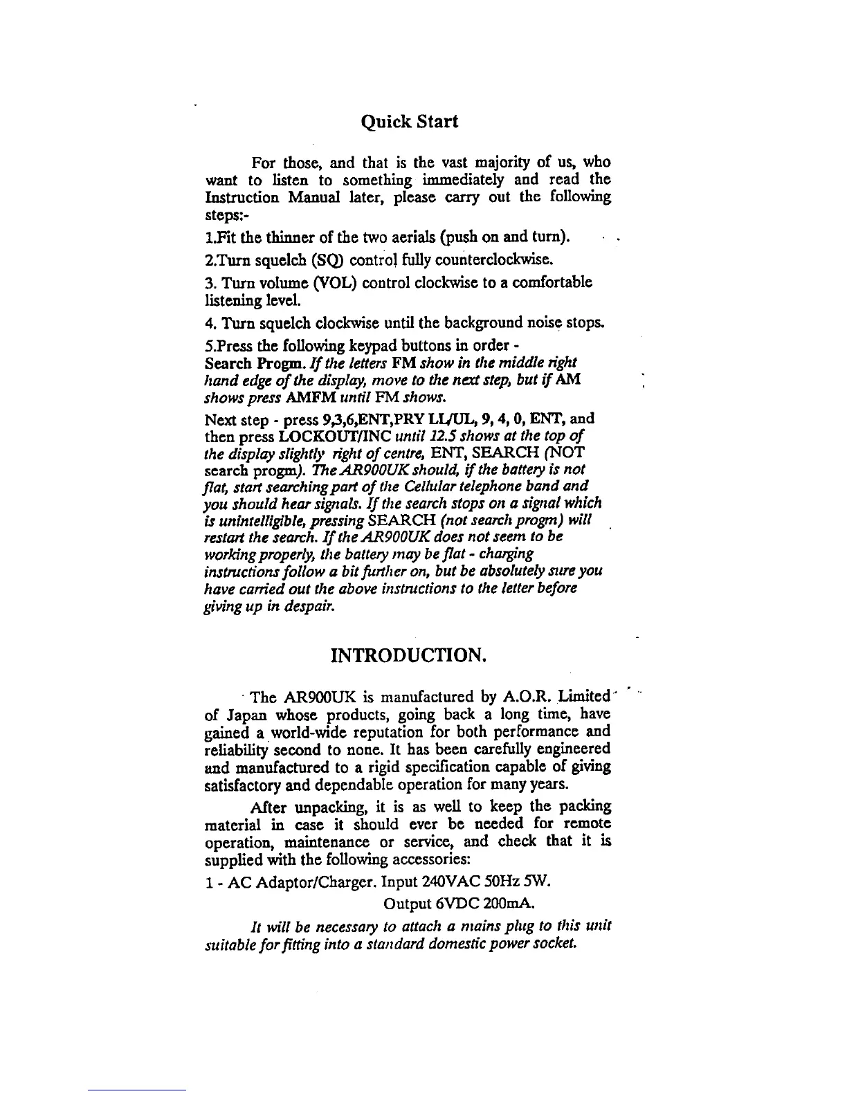 AOR AR900 - Quick Start; Introduction; Accessories