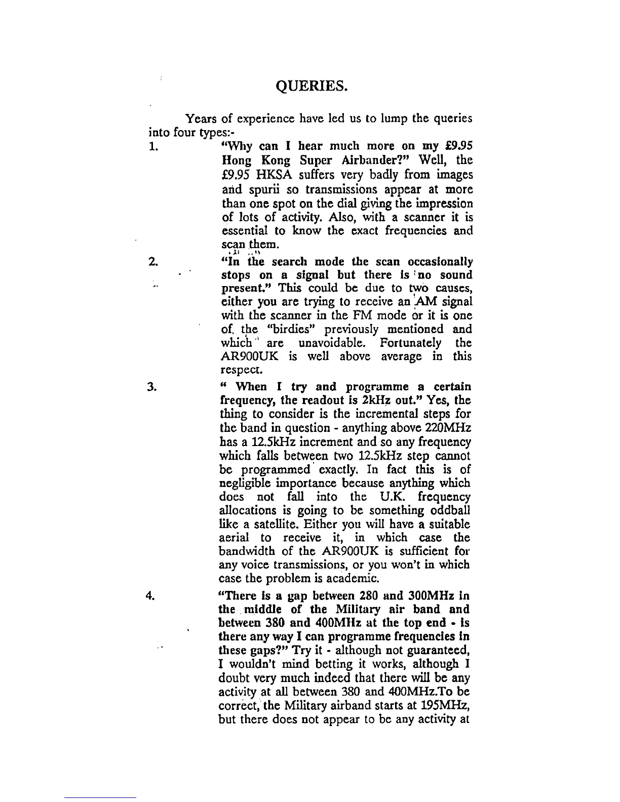 AOR AR900 - Queries; Image and Spurii; No Sound on Signal