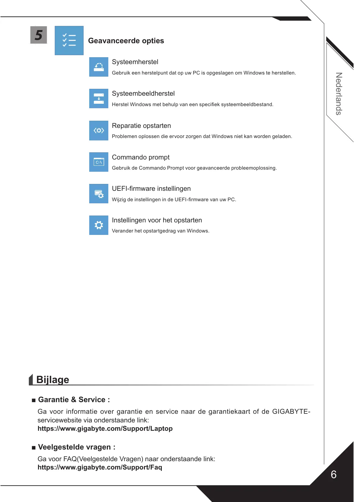 Ga voor informatie over garantie en service naar de garantiekaart of de GIGABYTE-