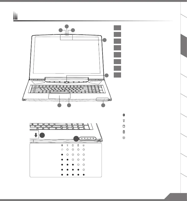 指示灯号检视电池剩余电量(电量对照如下图)(电池模式下)