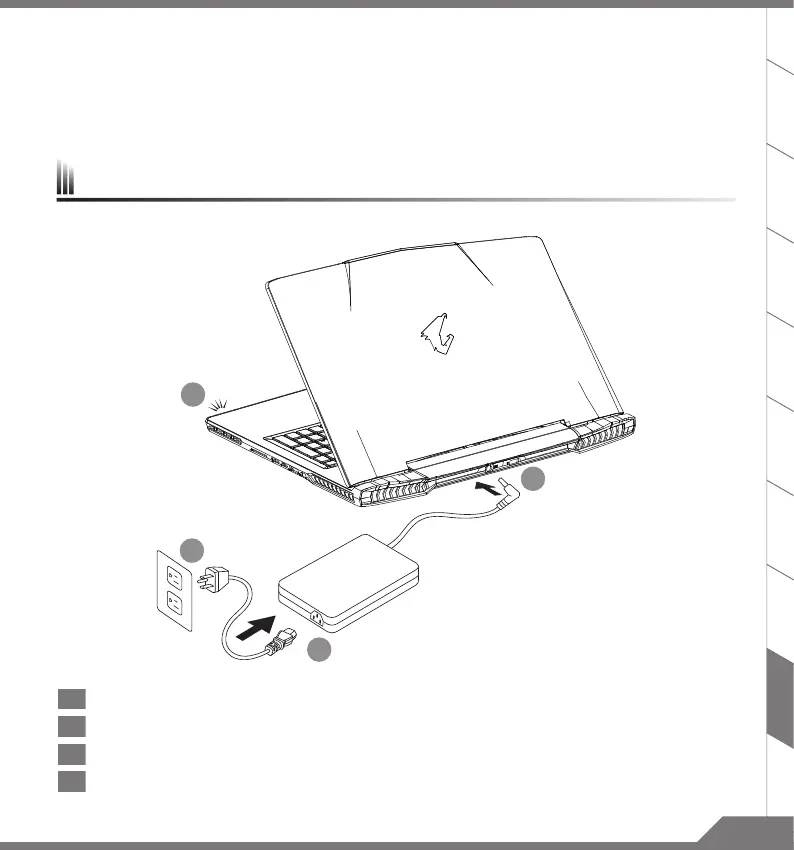 2 Collegare l'adattatore AC al jack DC-in sul retro del notebook.