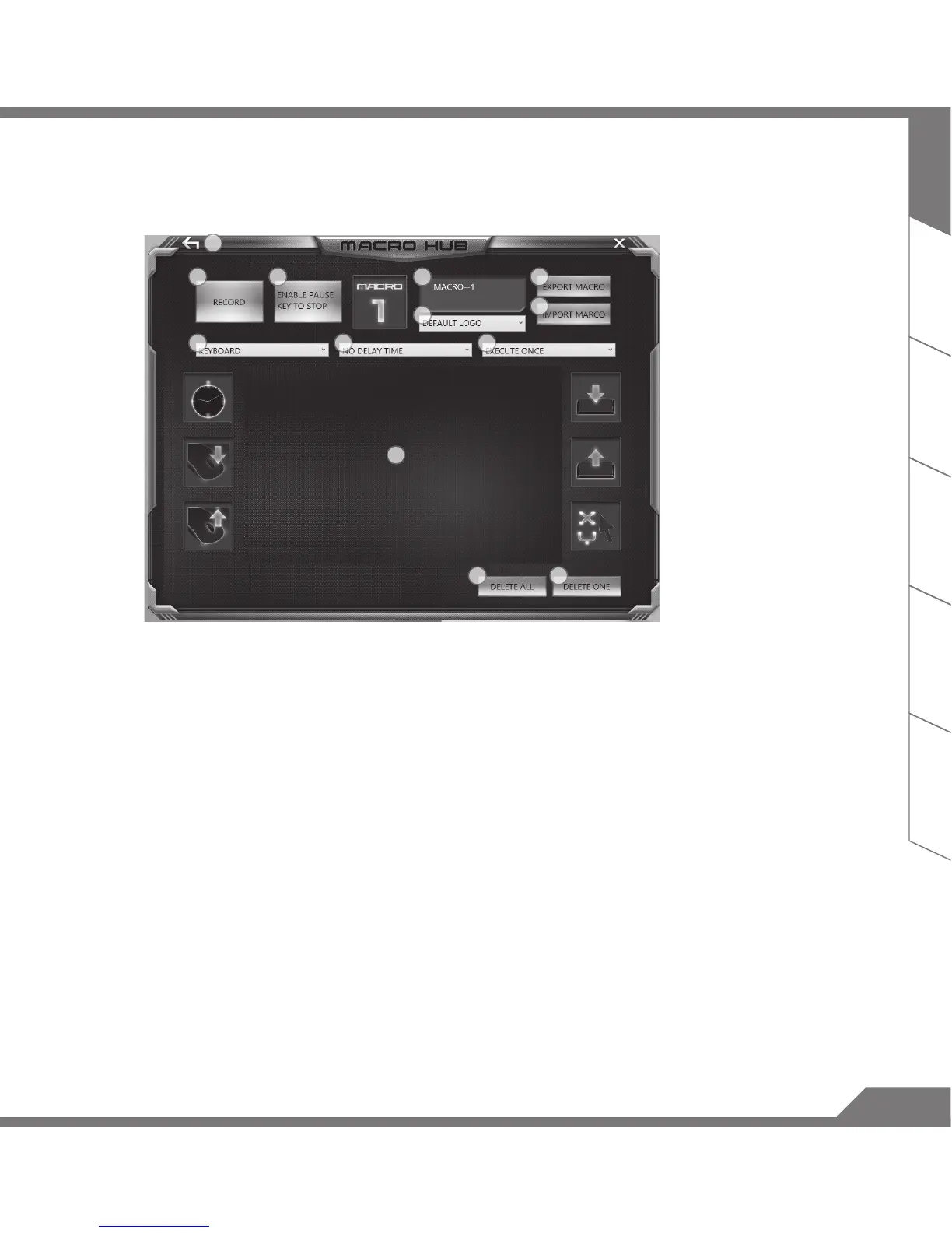 d. The overview of macro record panel (you can record your own macro here)