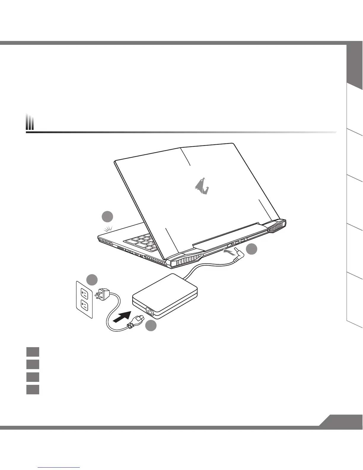 2 Connect the AC adapter to the DC-in jack on the back side of the notebook.