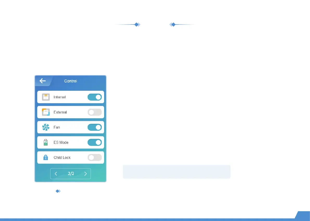 CONTROL includes switches for internal light, external light, fan, ES mode, child lock, power loss recovery and