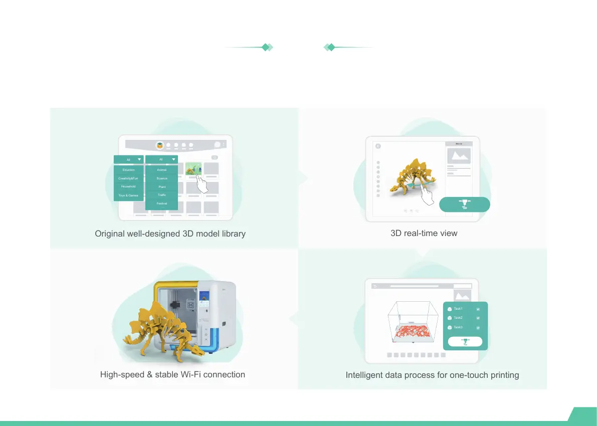 Well-designed 3D model library in four categories.