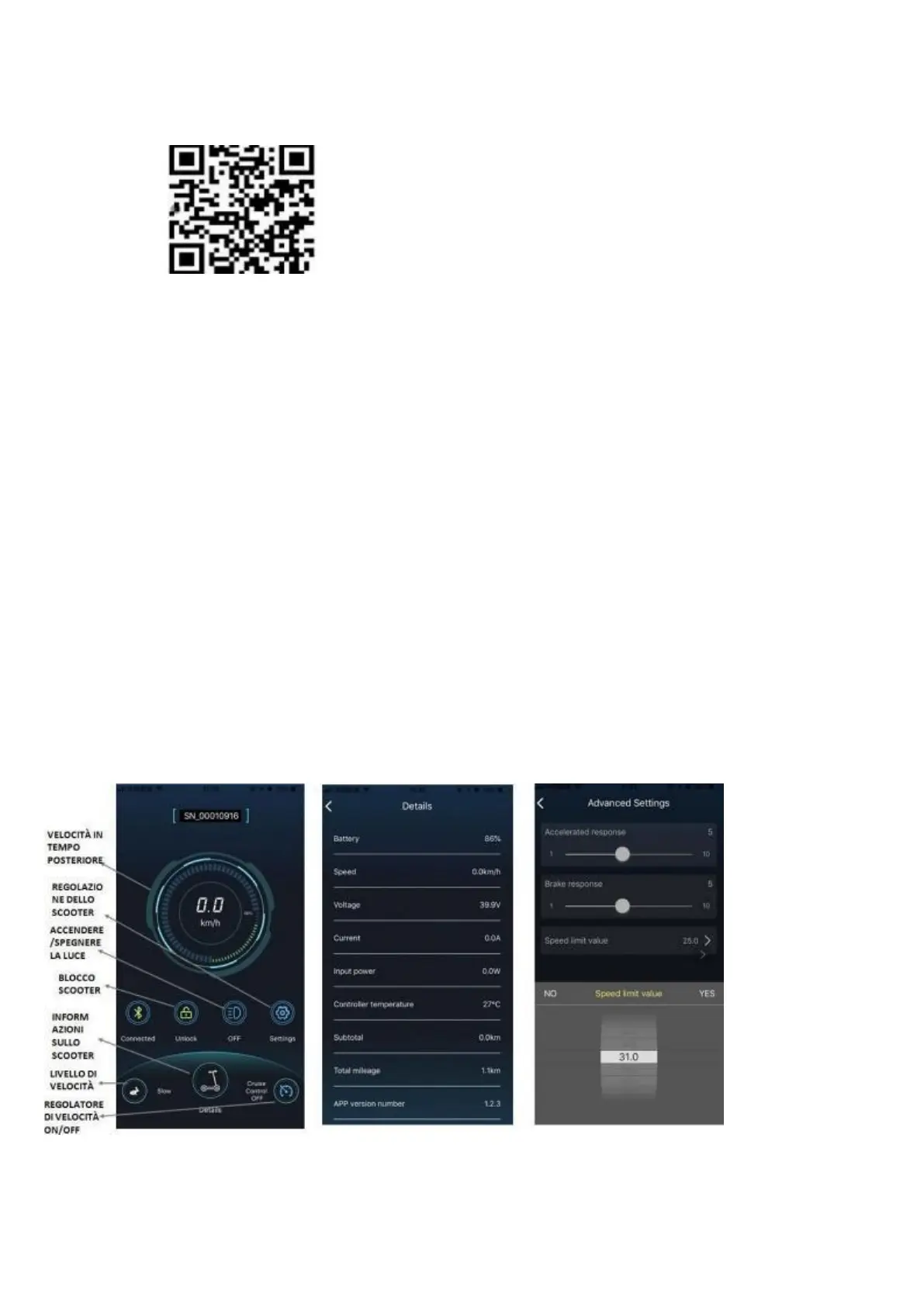 utilizzare l'app per accendere/spegnere la luce e lo scooter, modificare la