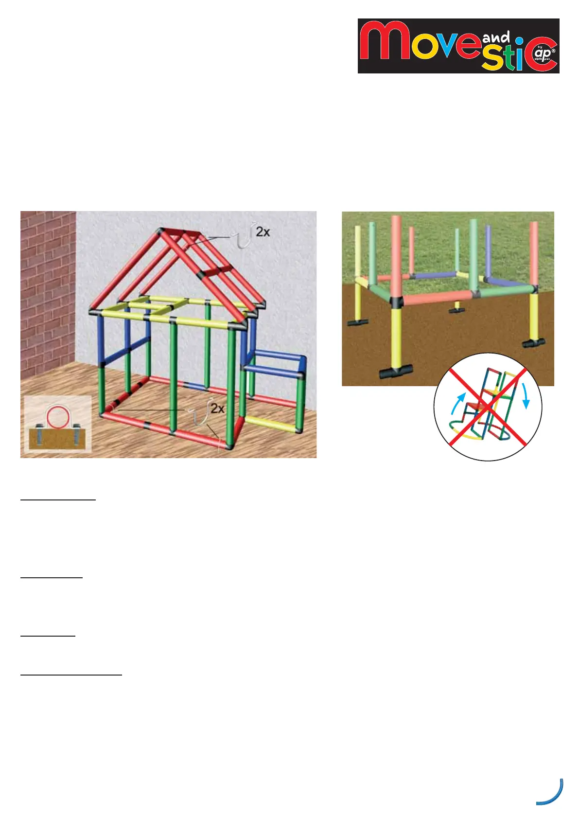 Attenzione: Se il gioco viene montato a spazio aperto, è obbligatorio concertarsi sulla situazione meteorologica. In caso