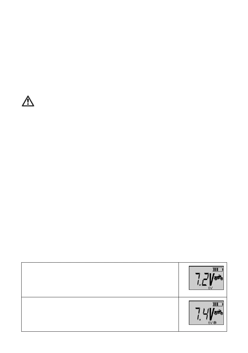 la tension de batterie actuelle et les symboles pour le programme de chargement ajusté s‘achent sur l‘écran.