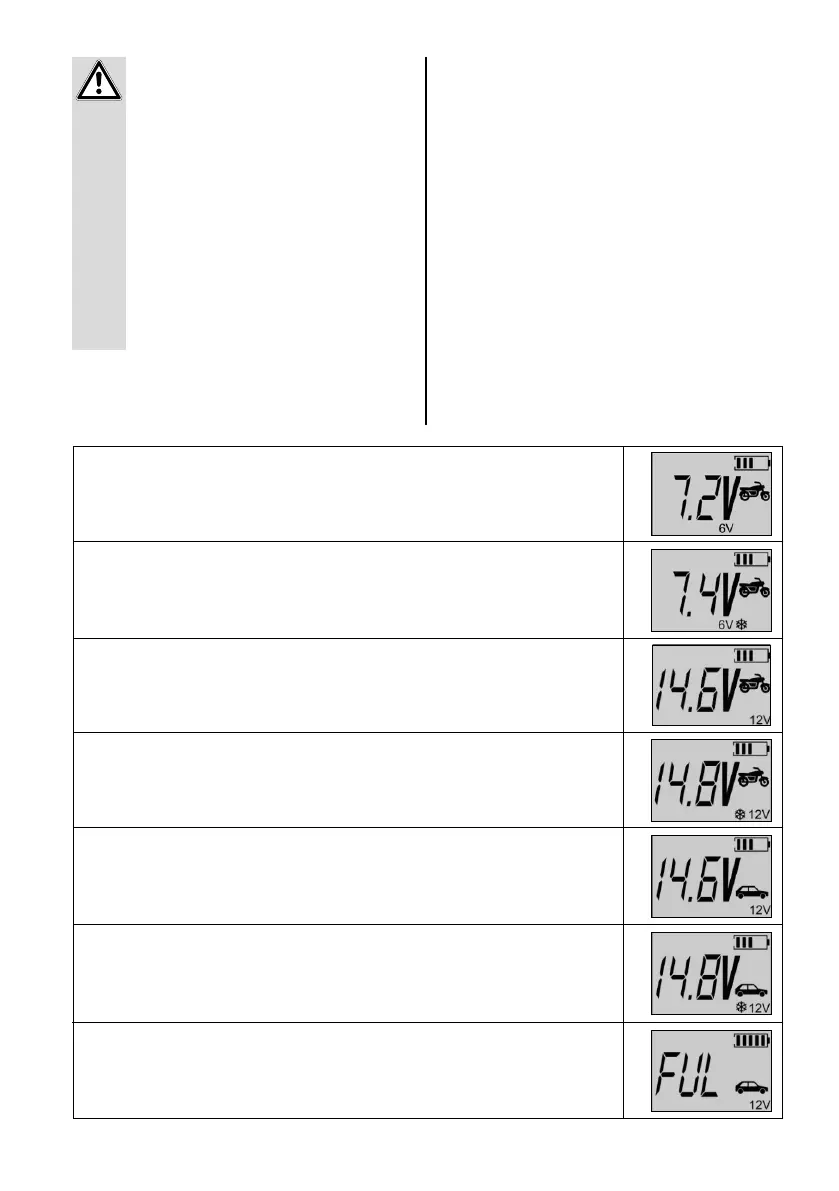 Programma di ricarica per batterie a 12 V, da 1,2 Ah a 14 Ah, temperature inferiori a 0°C