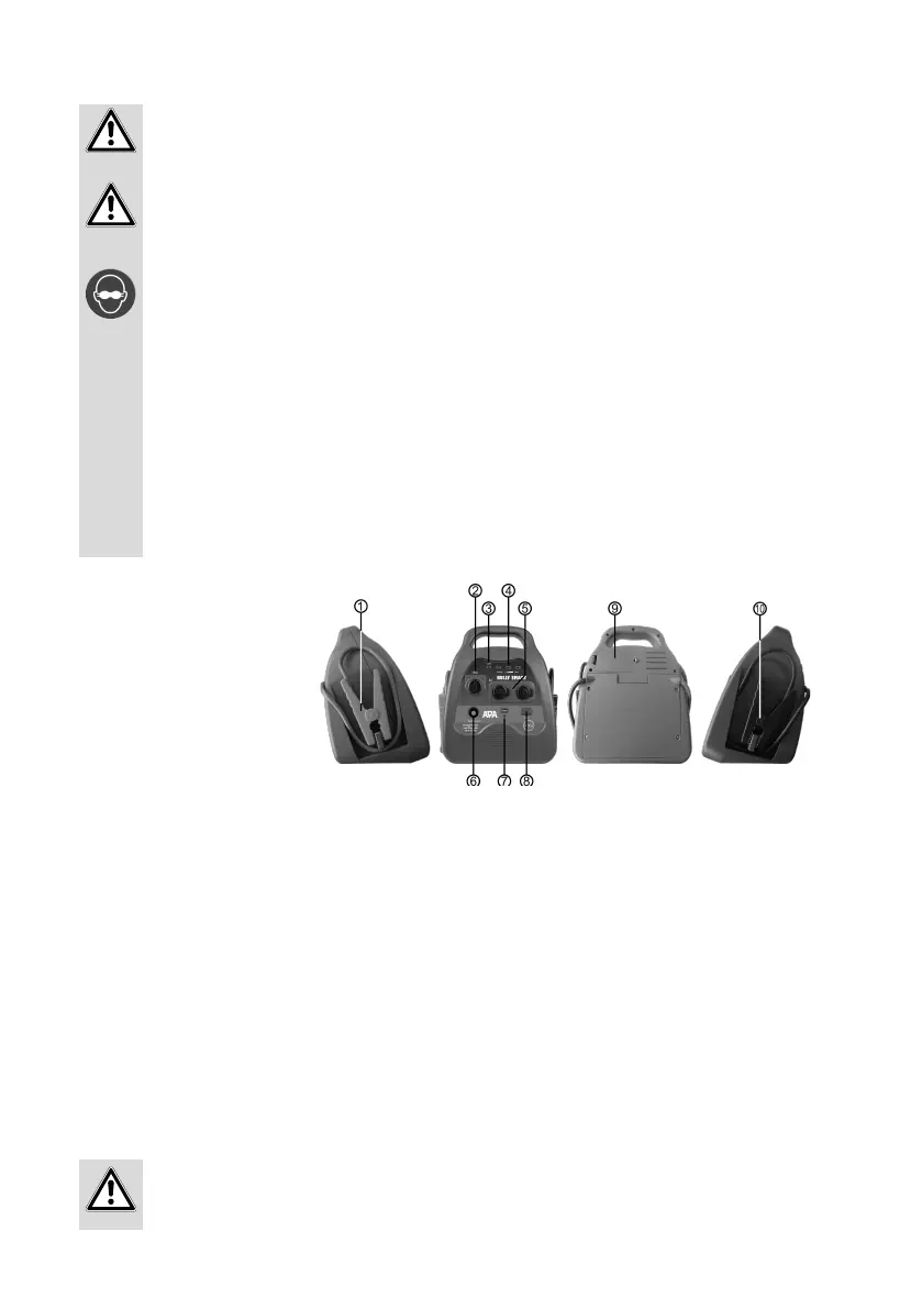 • Tragen Sie beim Umgang mit Bleiakkus stets eine Schutzbrille und Schutzkleidung.