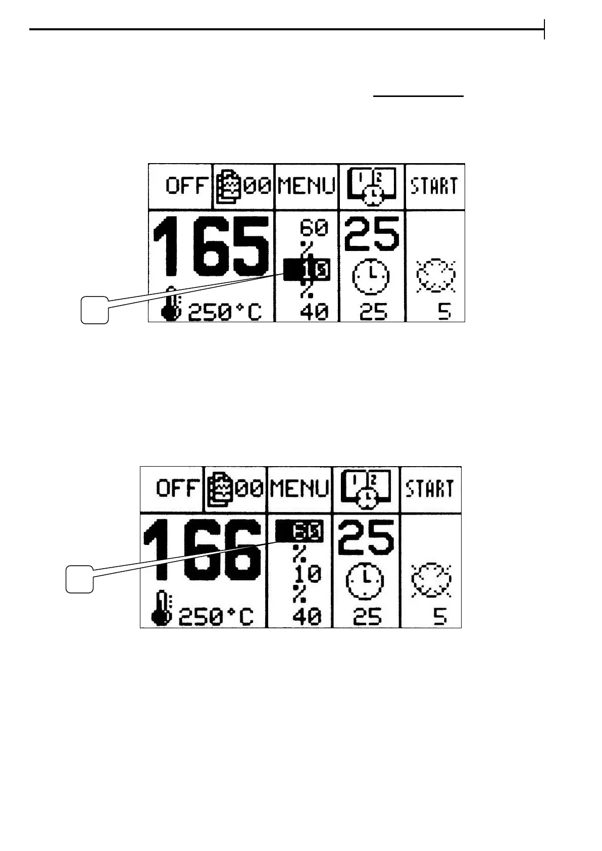 Enter и измените параметры с помощью + и - (100% - это программируемый максимум)