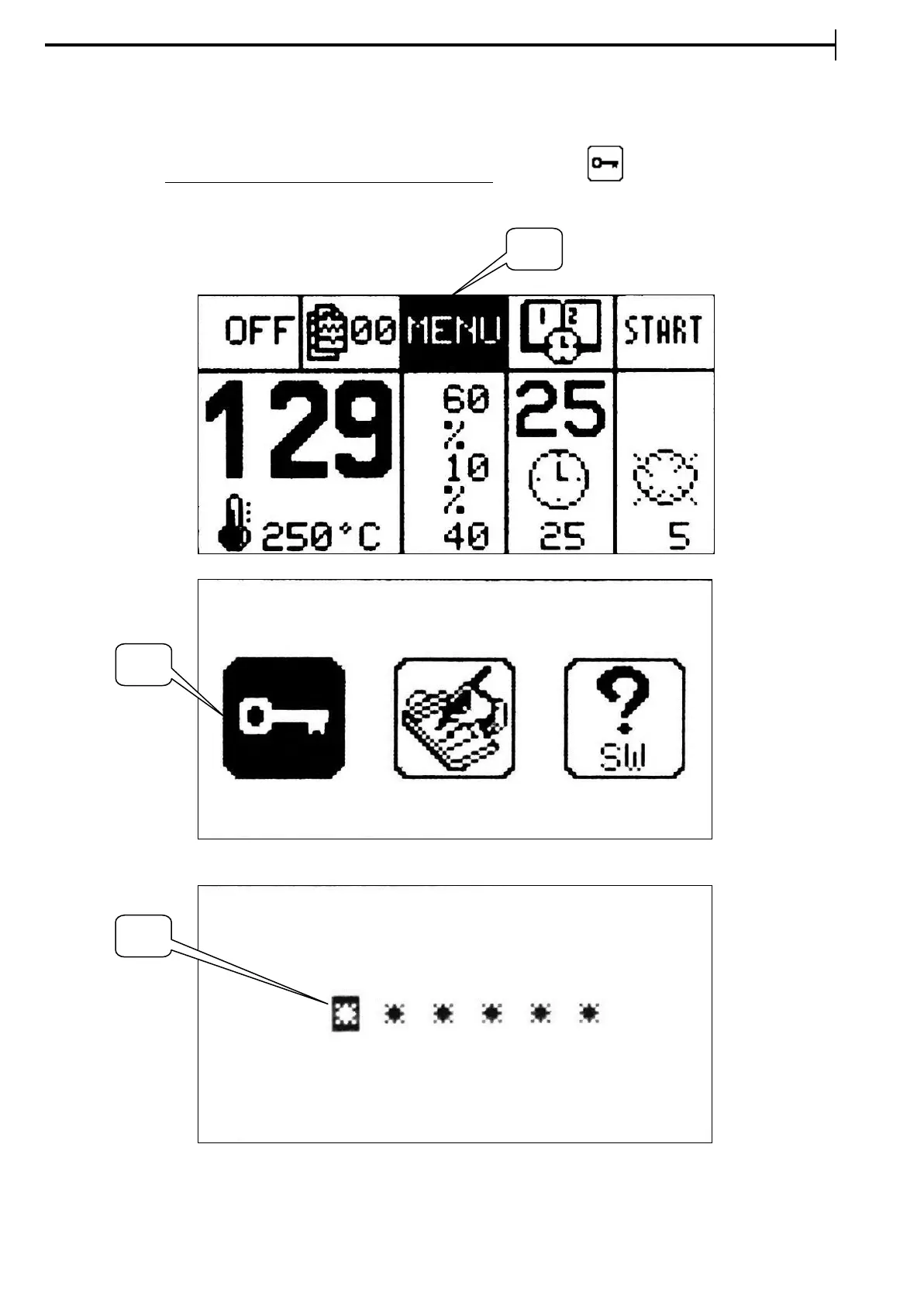 машины, необходимо ввести пароль (25) для доступа к настройке параметров машины.