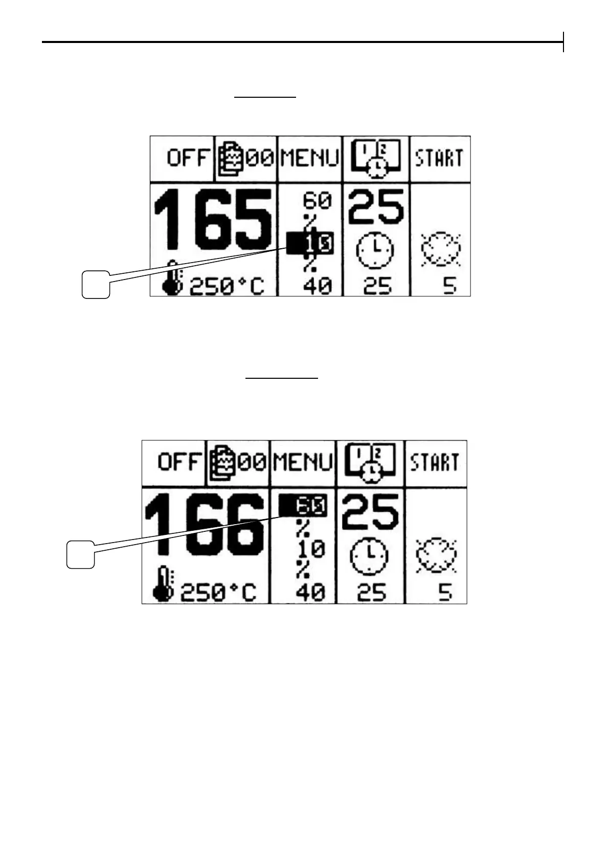 – buttons (100% is the programmable max.) To confirm the value press Enter and leave the setting phase.