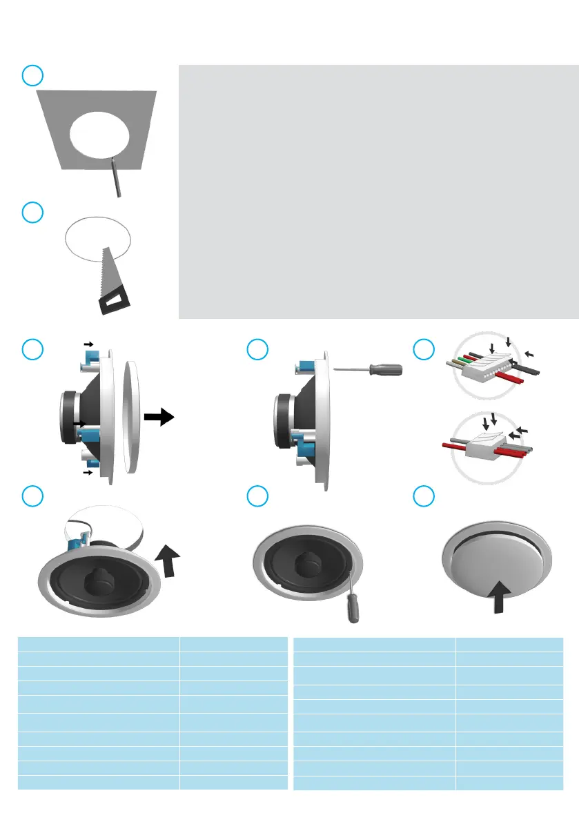 (5) Connect the speaker wires and (6) insert the speaker in the precut speaker opening.
