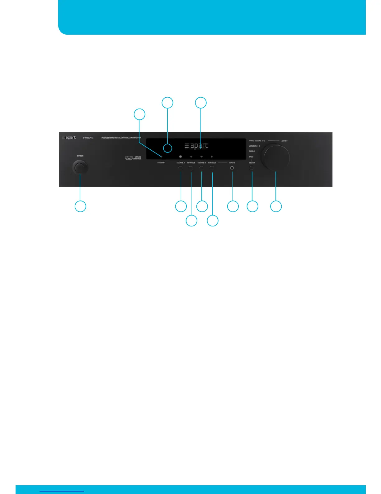 9. Stand-by led: this led is lit when the unit is powered off by