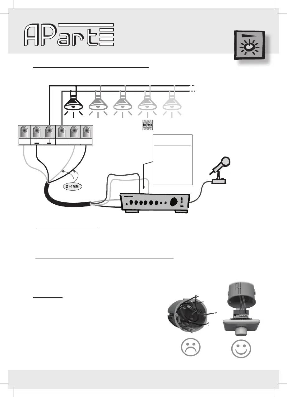- Amplifier with 24Volts priority output contact (24Volts / 1A : you can connect up to 50pcs of volume controllers)