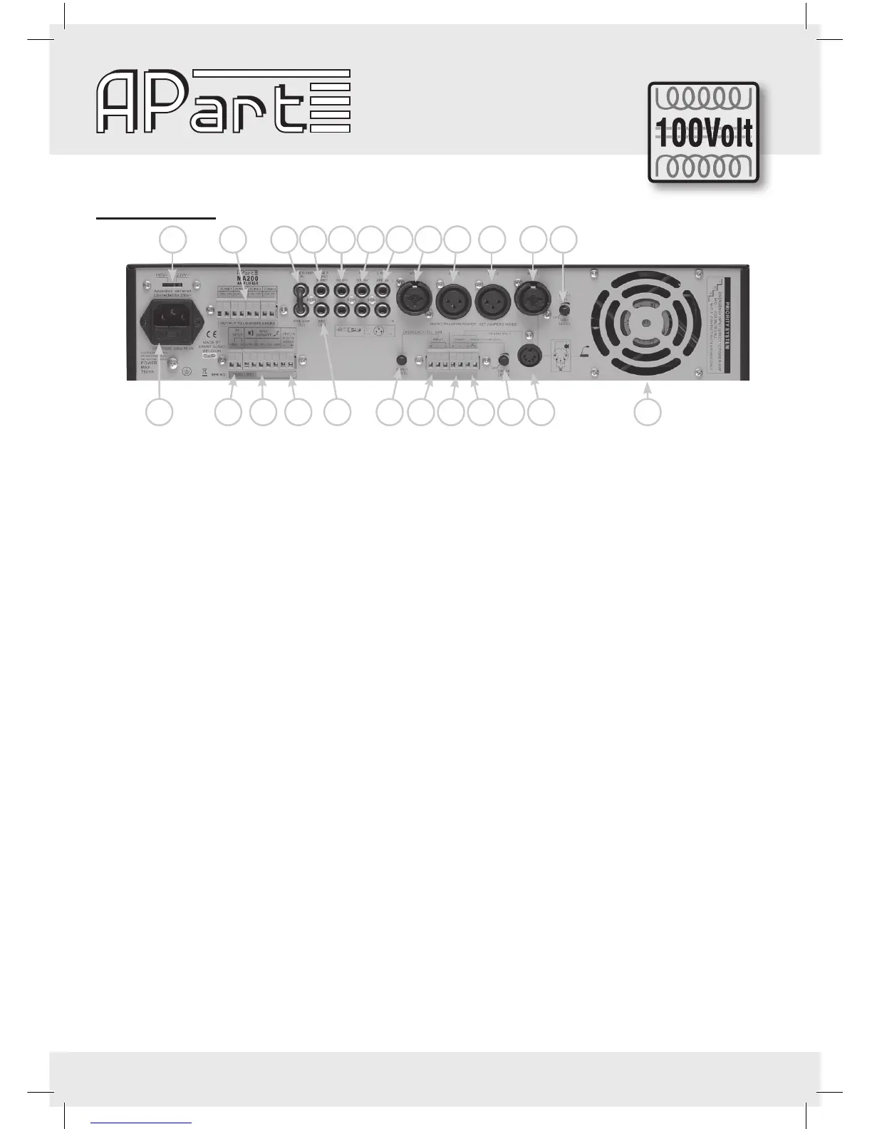 17) Zone 100V loudspeaker outputs: When you need to activate/deactivate separate loudspeaker zones, you