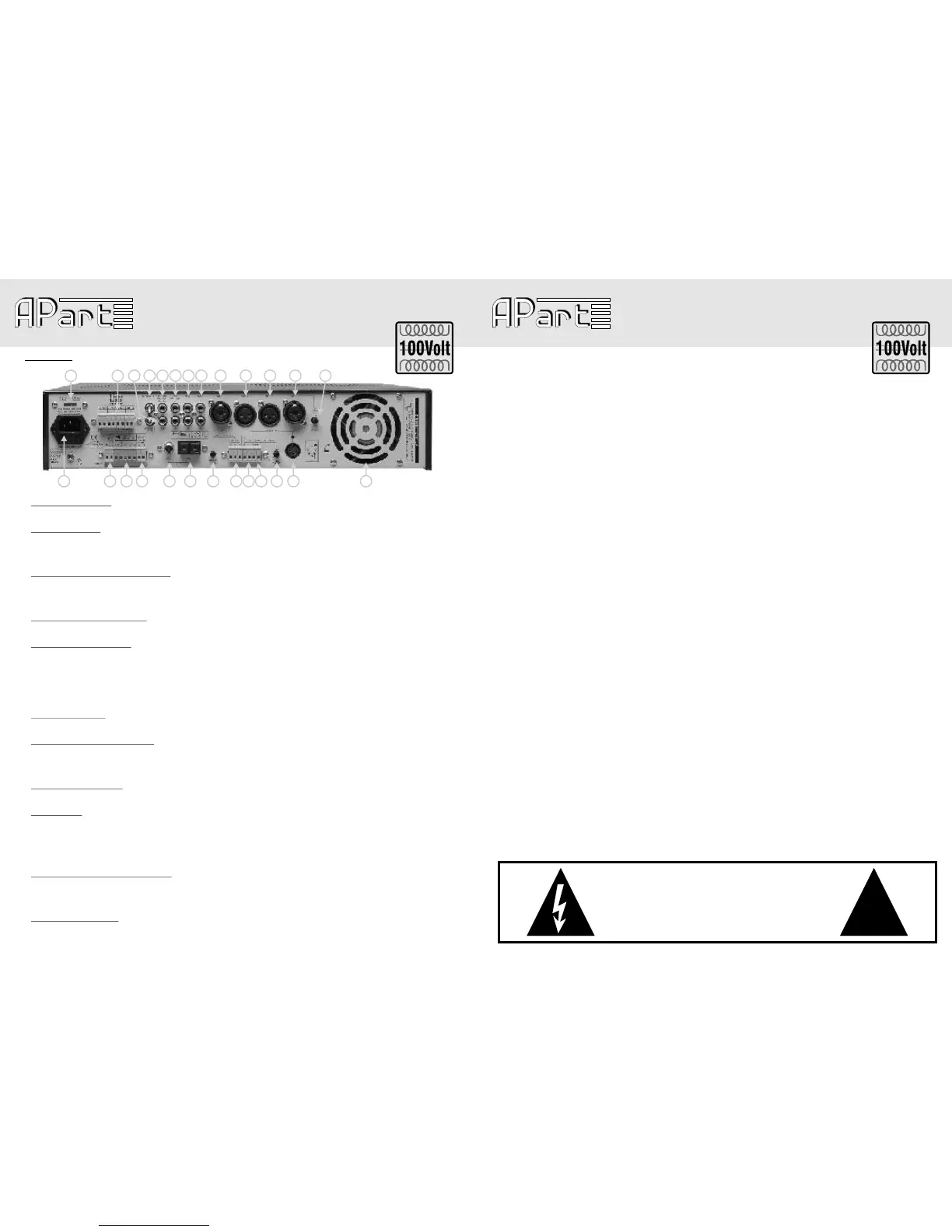 selectors at the front (see 4). Don't use these 100V outputs together with the 8 ohm, 50V or 70V terminals.