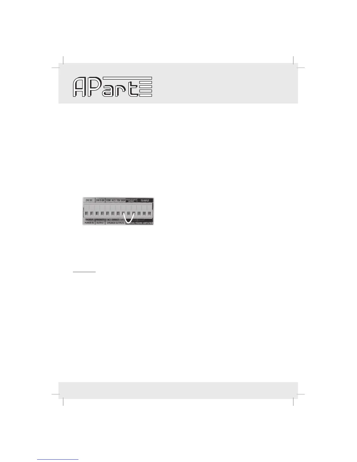 circuitry. When a separate paging amplifier is in use, this wire bridge MUST be removed. Never use