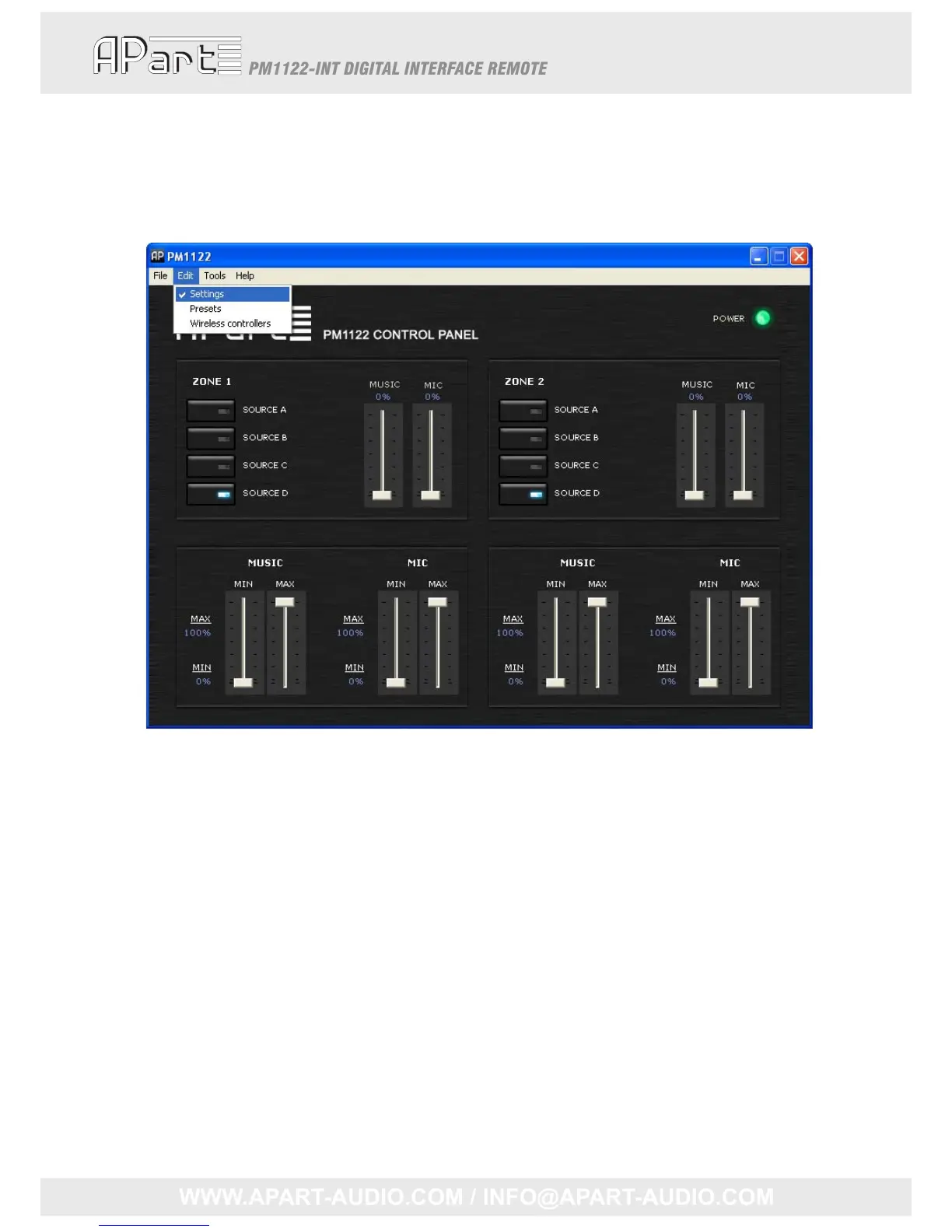zones.Usebuttonsandlevelsliderstoadjustthevalues.ThePM1122willimmediatelyreact.This