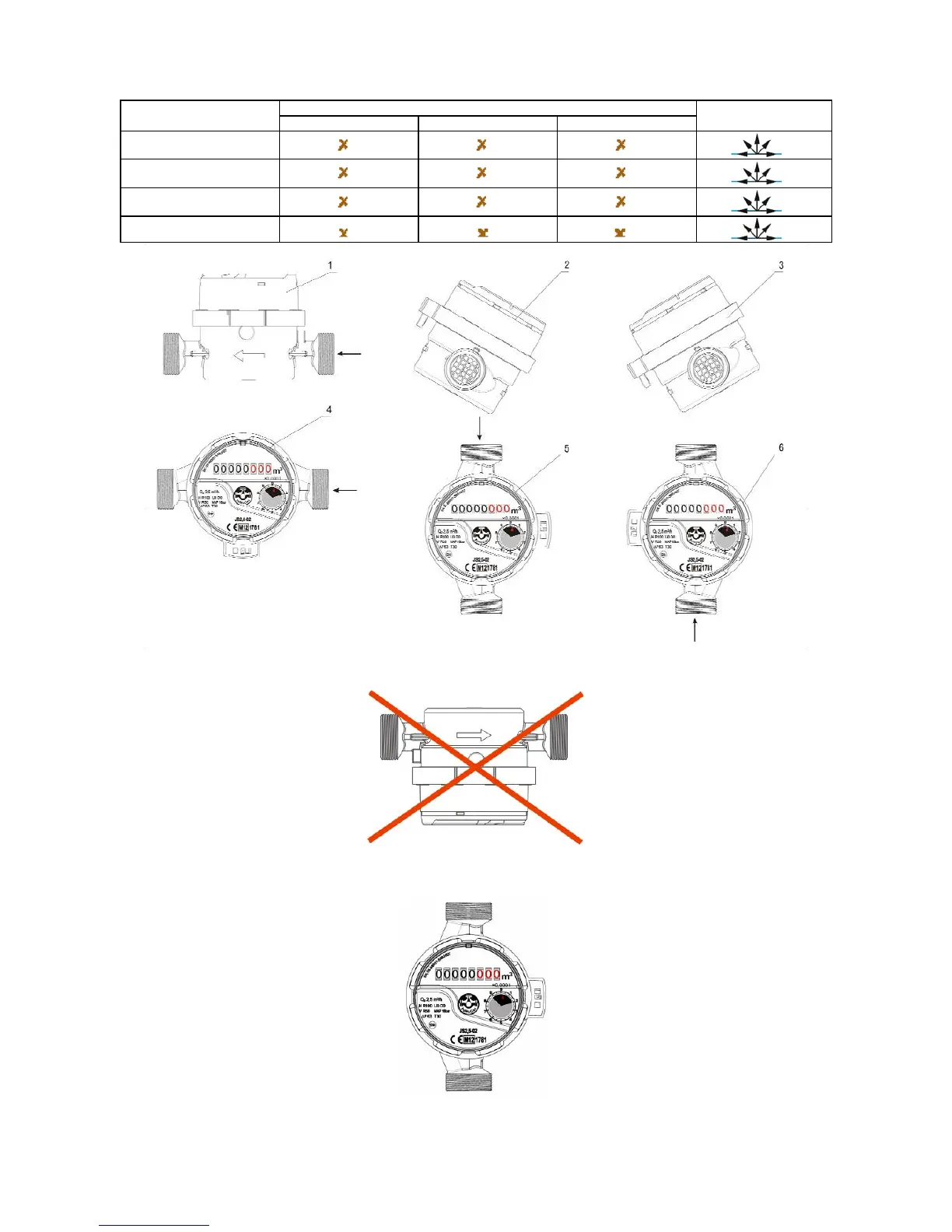 Fig. 2 Forbidden ways of mounting the watermeters produced by APATOR POWOGAZ;