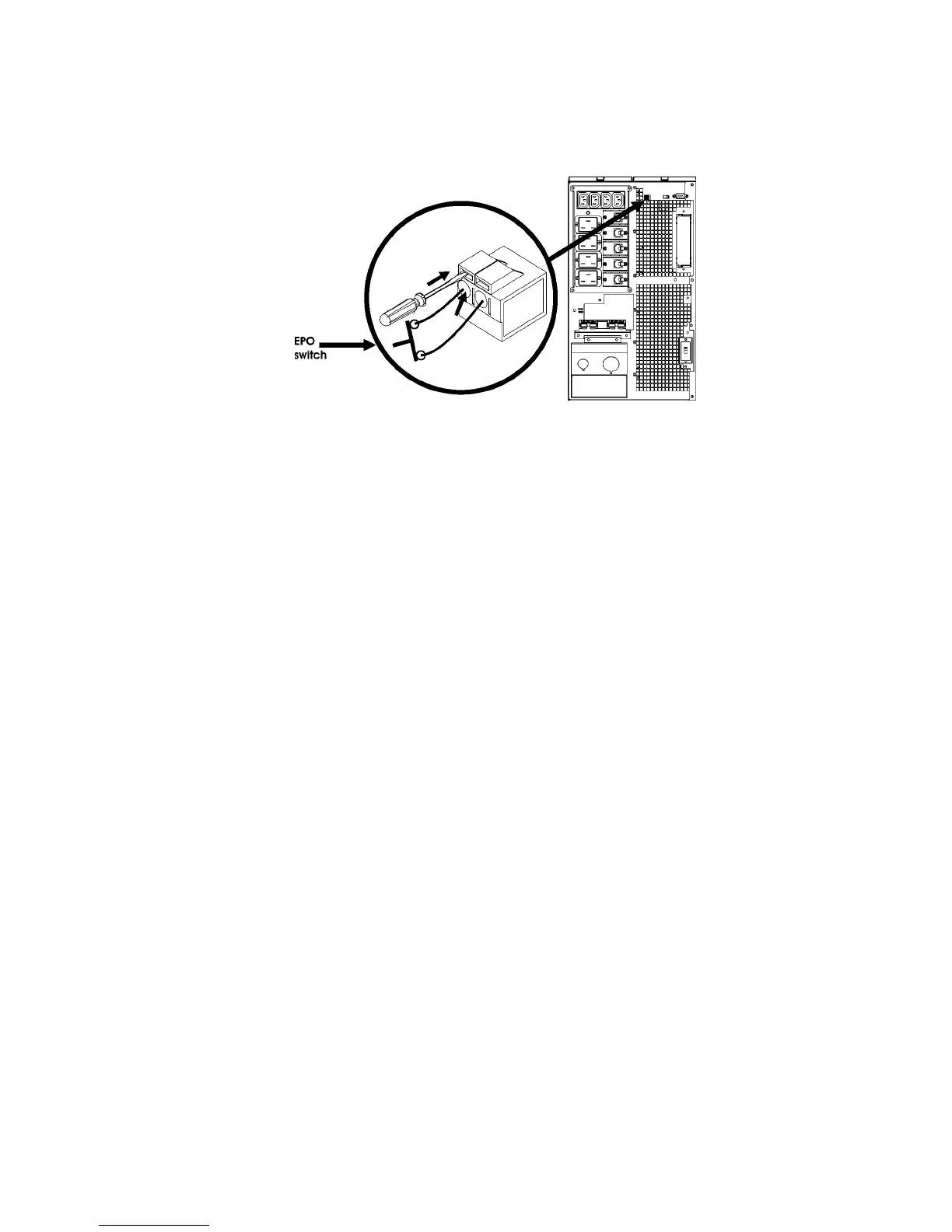 The EPO switch is internally powered by the UPS for use with non-powered switch circuit breakers.