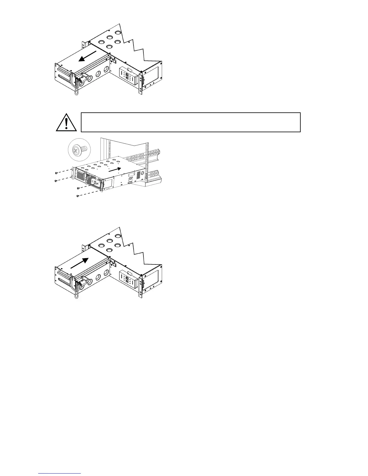 Due to its weight, two people are required to install the UPS in the rack.