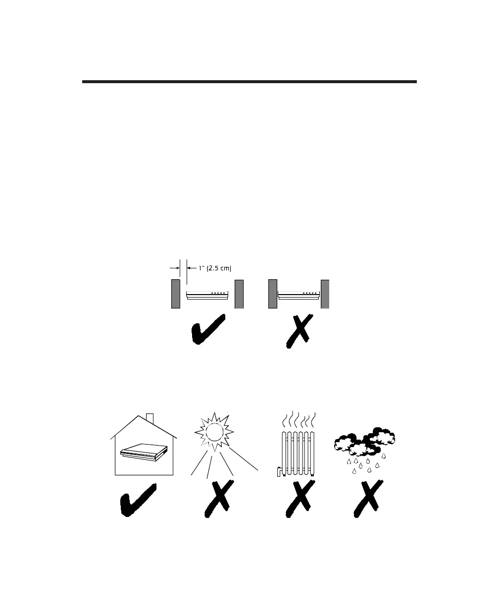 Note: Allow 1 inch (2.5 cm) minimum clearance on all sides for proper ventilation.