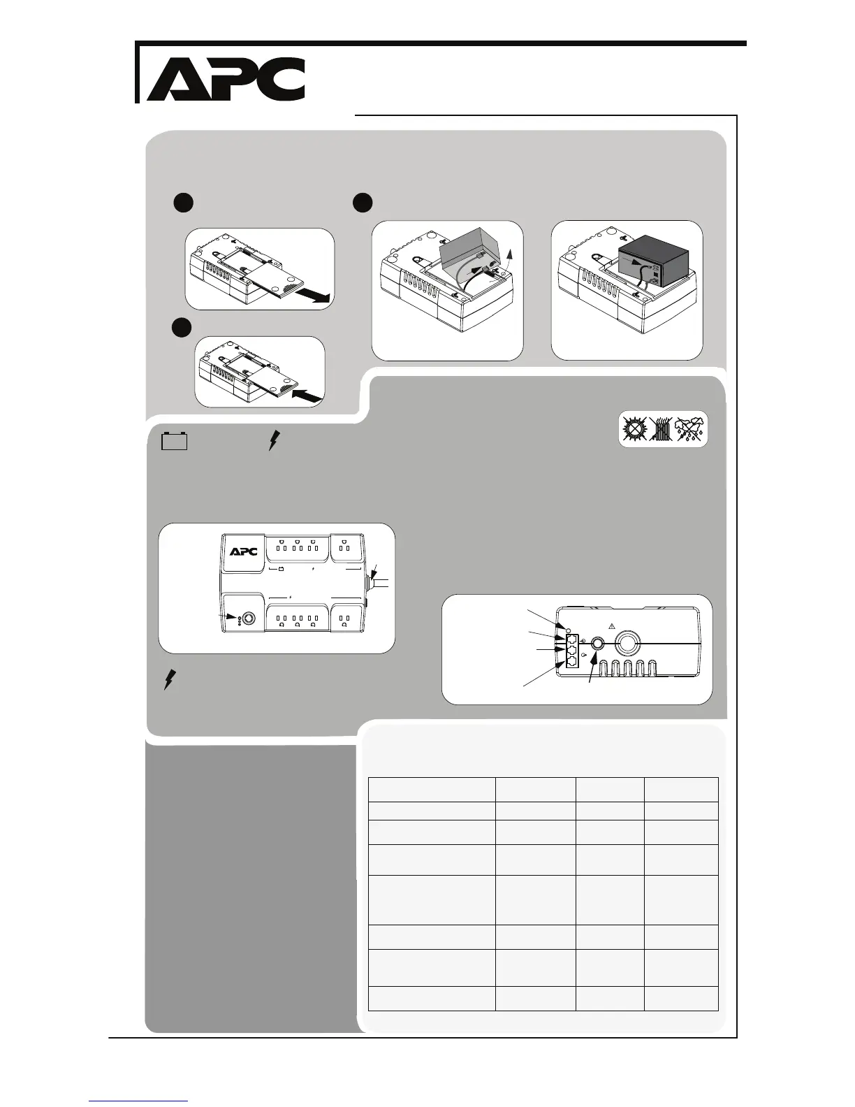 Use the following table to identify the status of the Back-UPS ES.