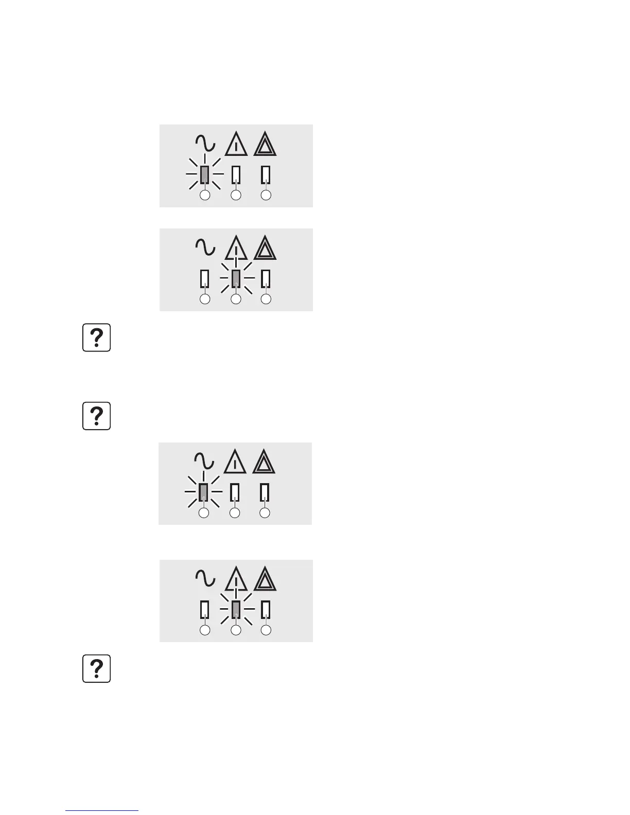 The display indicates the UPS operating status conditions and the required action.