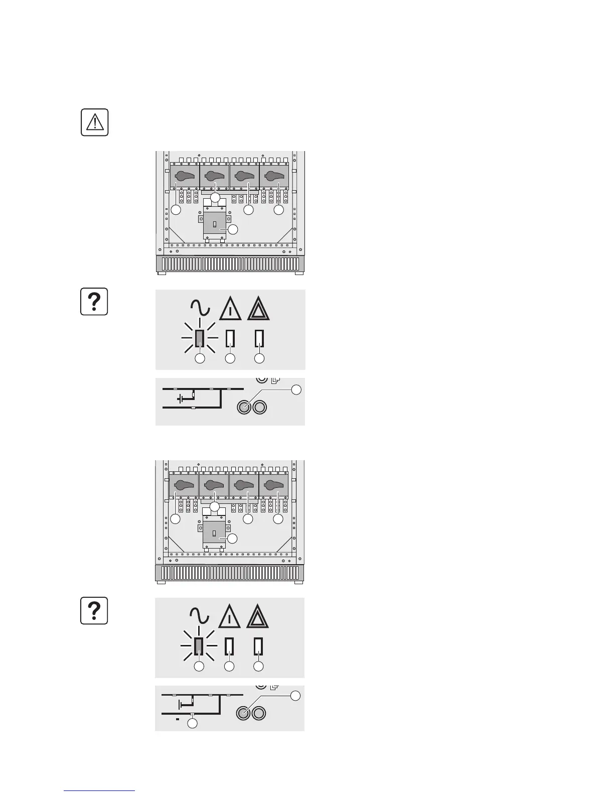 Restart the UPS unit for which switch Q3BP (10) is ON and the other switches are OFF.