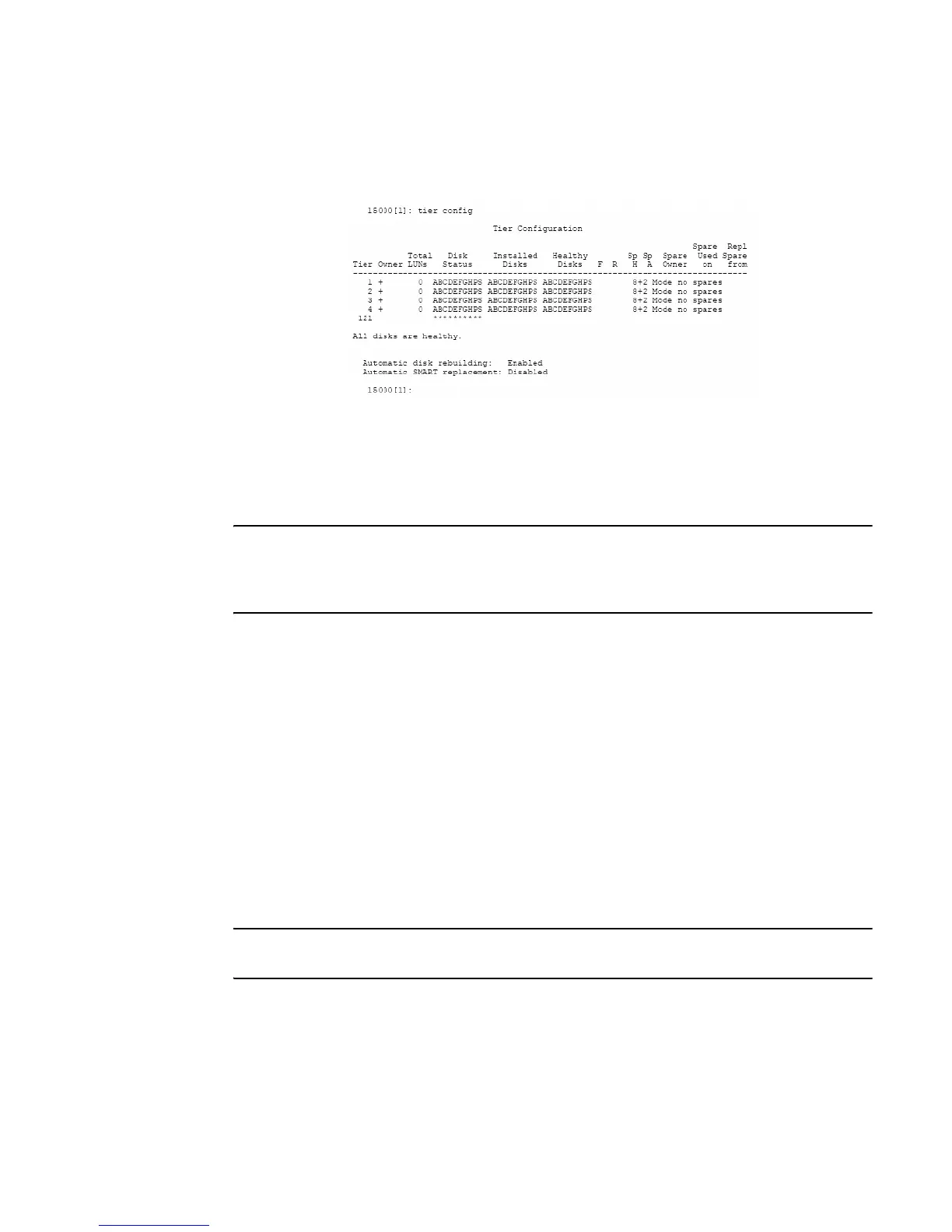 TIER CONFIG=ALL displays tier configuration and replacements for both 8+1 and 8+2 modes. (Figure