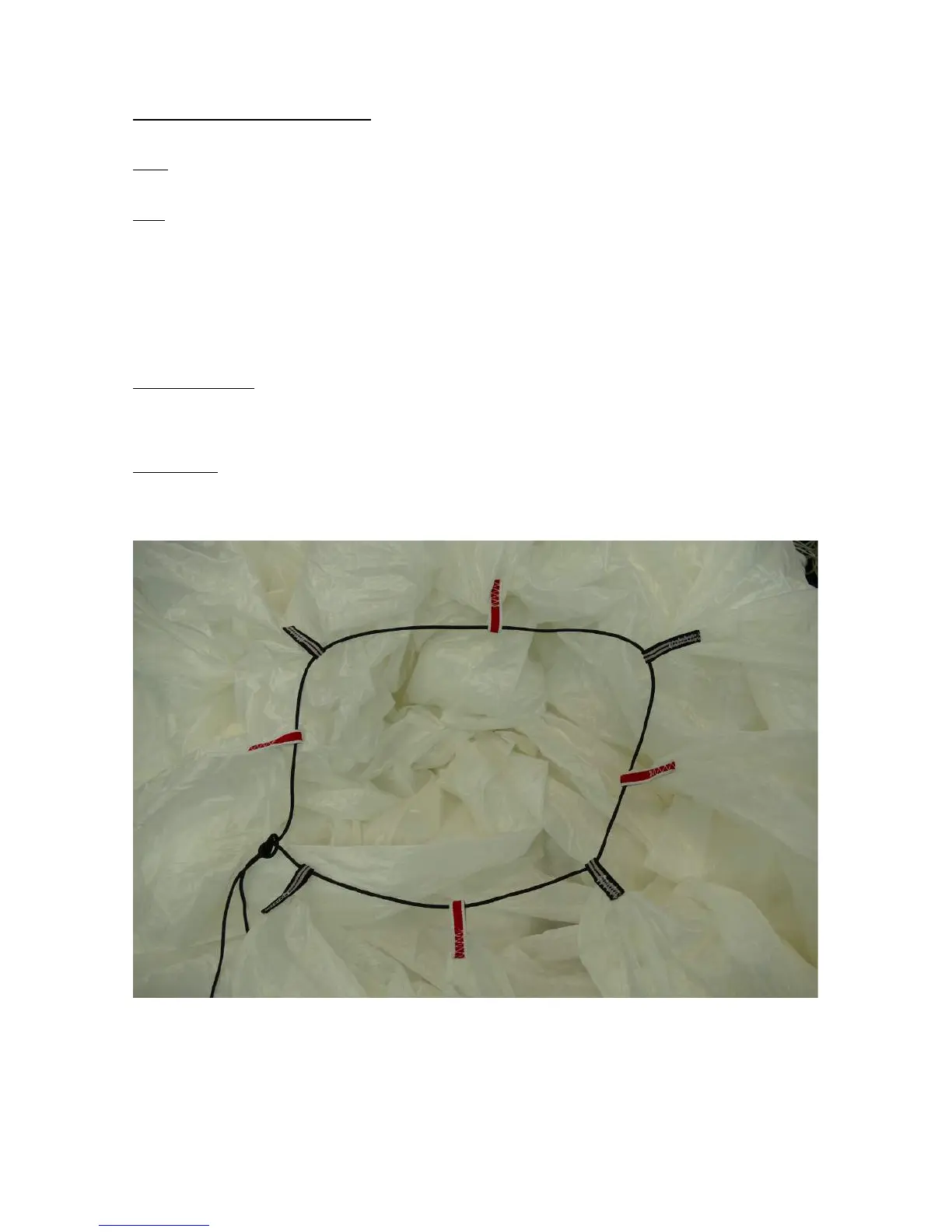 2 x Pull-up lines (if installing into harness or external container – not covered by this manual)