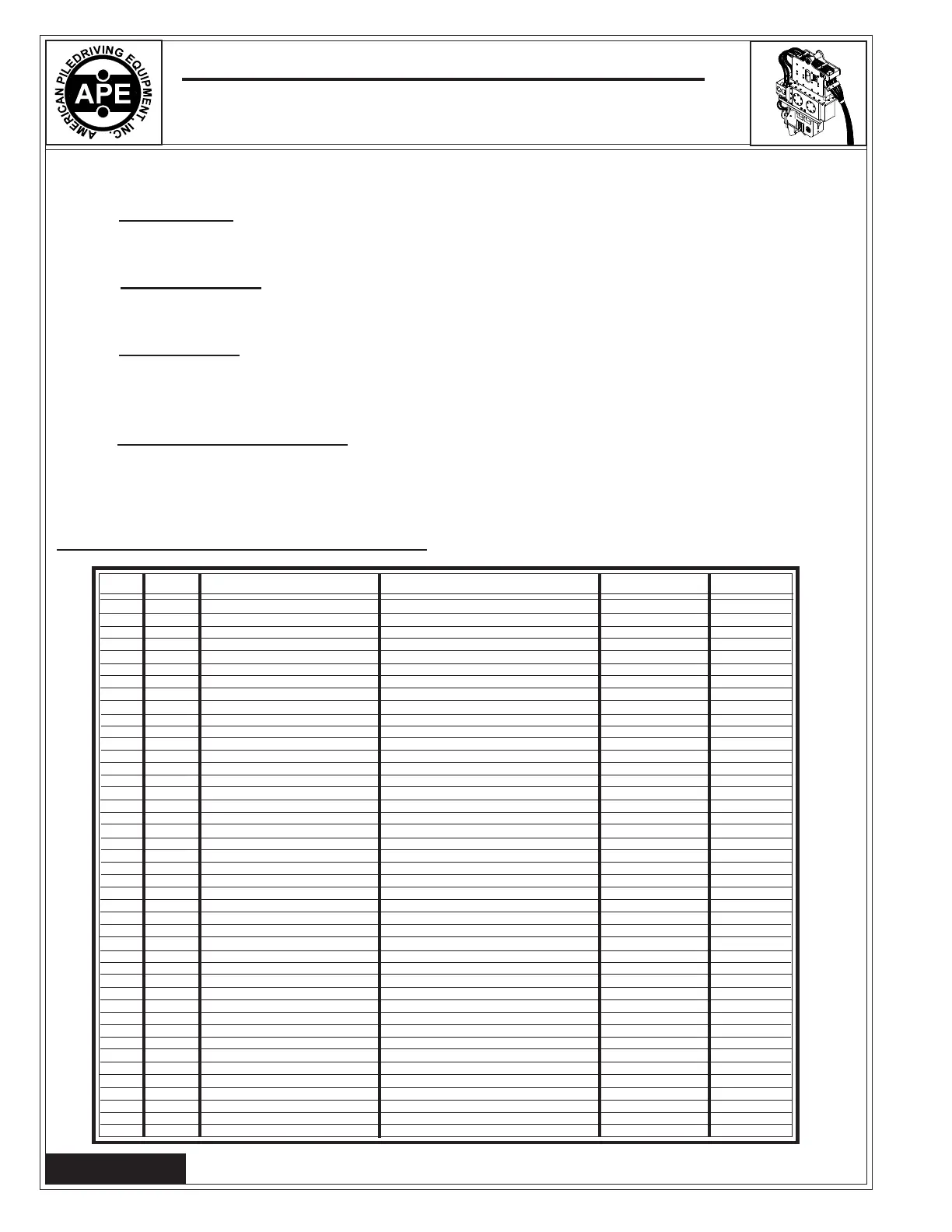 ITEM QTY DESCRIPTION PART NUMBER MFG. APE, P/N