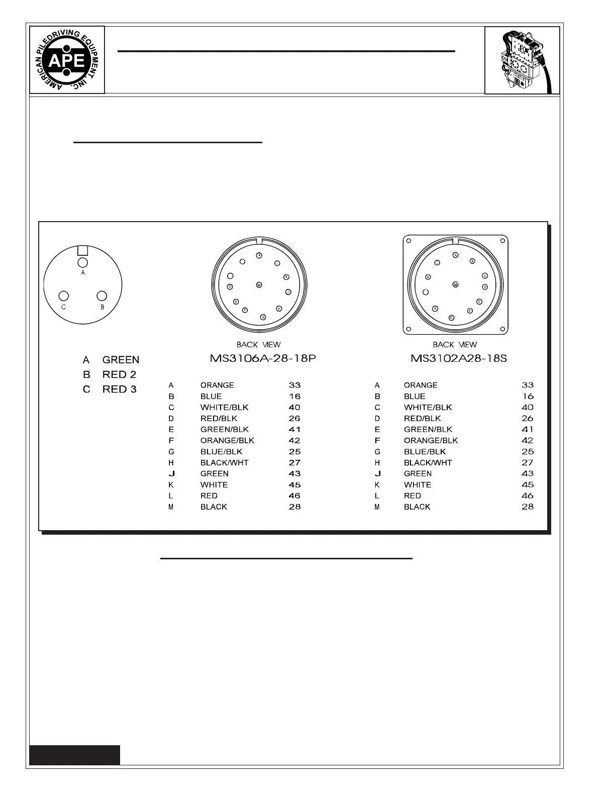 The following is the pin wiring configuration and the wire colors of the amphenol connectors for