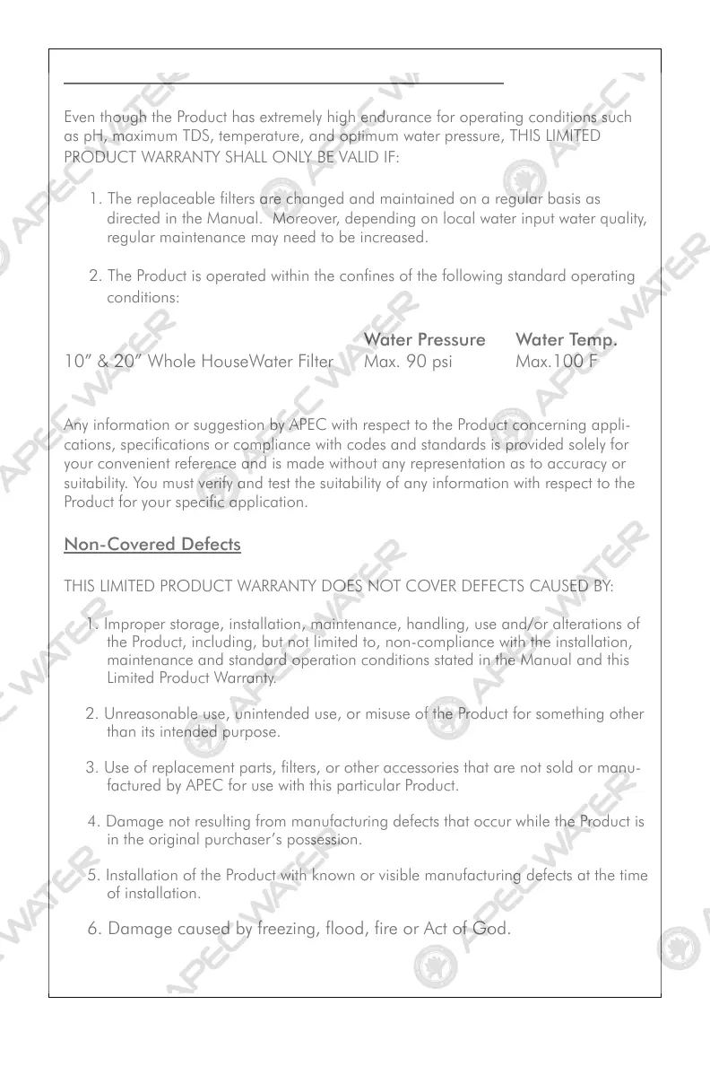 as pH, maximum TDS, temperature, and optimum water pressure, THIS LIMITED