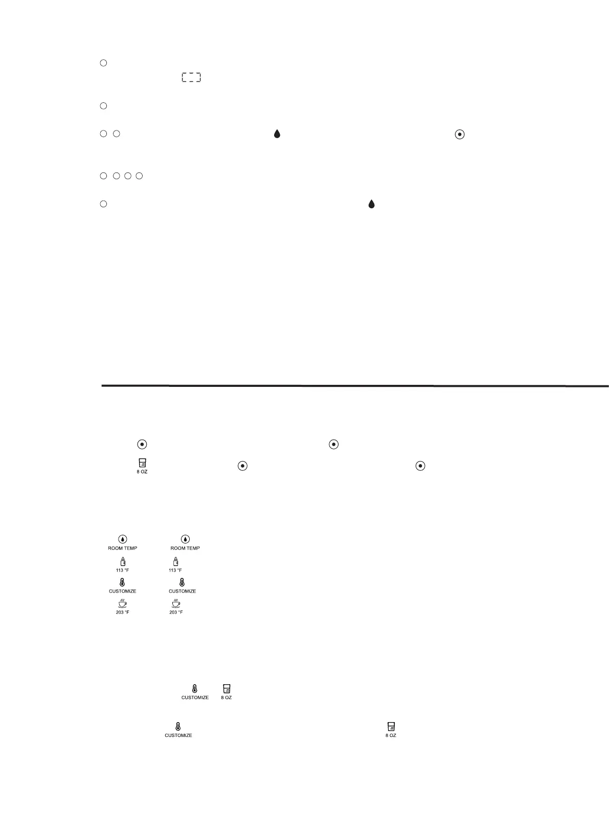 • : Press key to select customized water temperature from 131°F, 149°F, 167°F or 185°F.