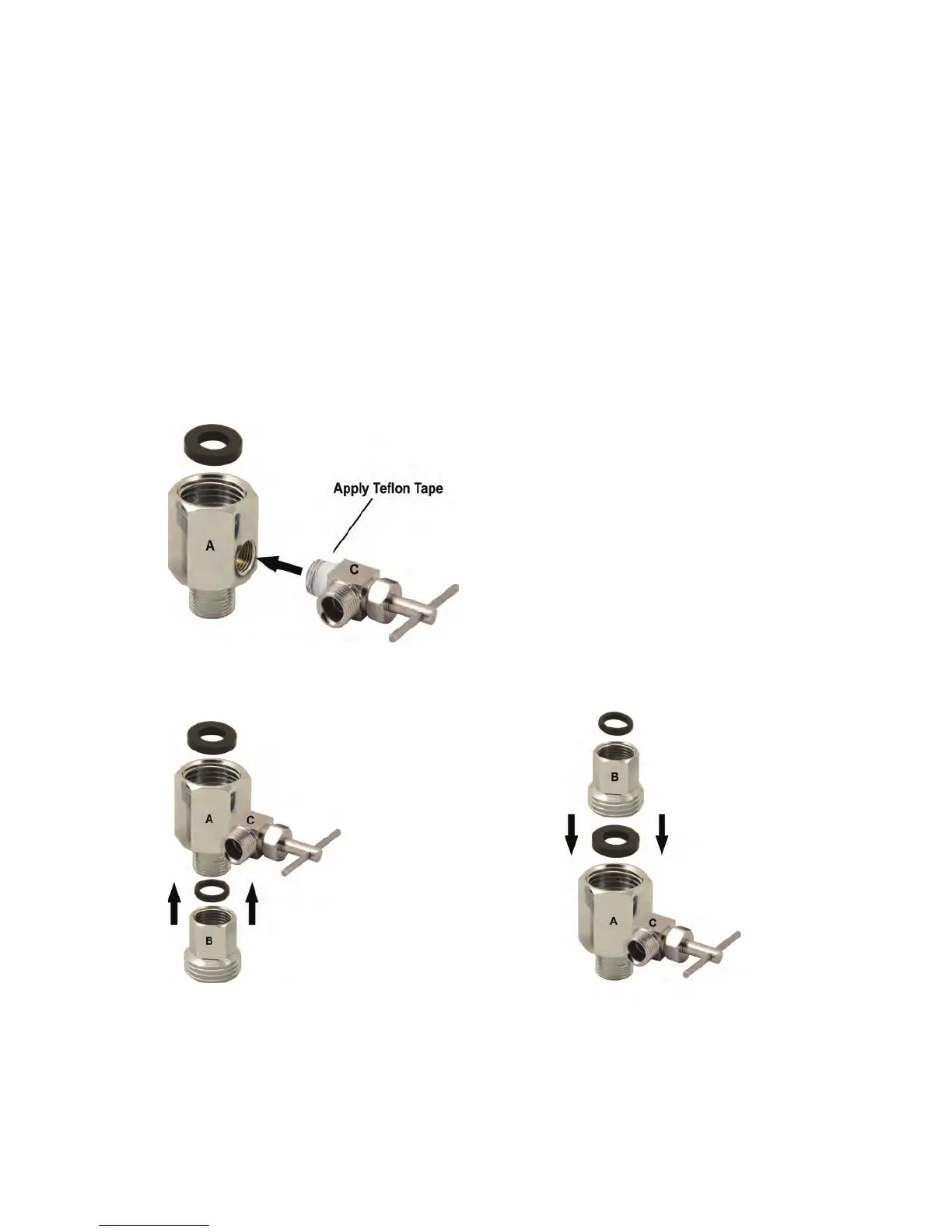 Attach the needle valve (C) to water supply adapter (A). Please apply 5-6 wraps of