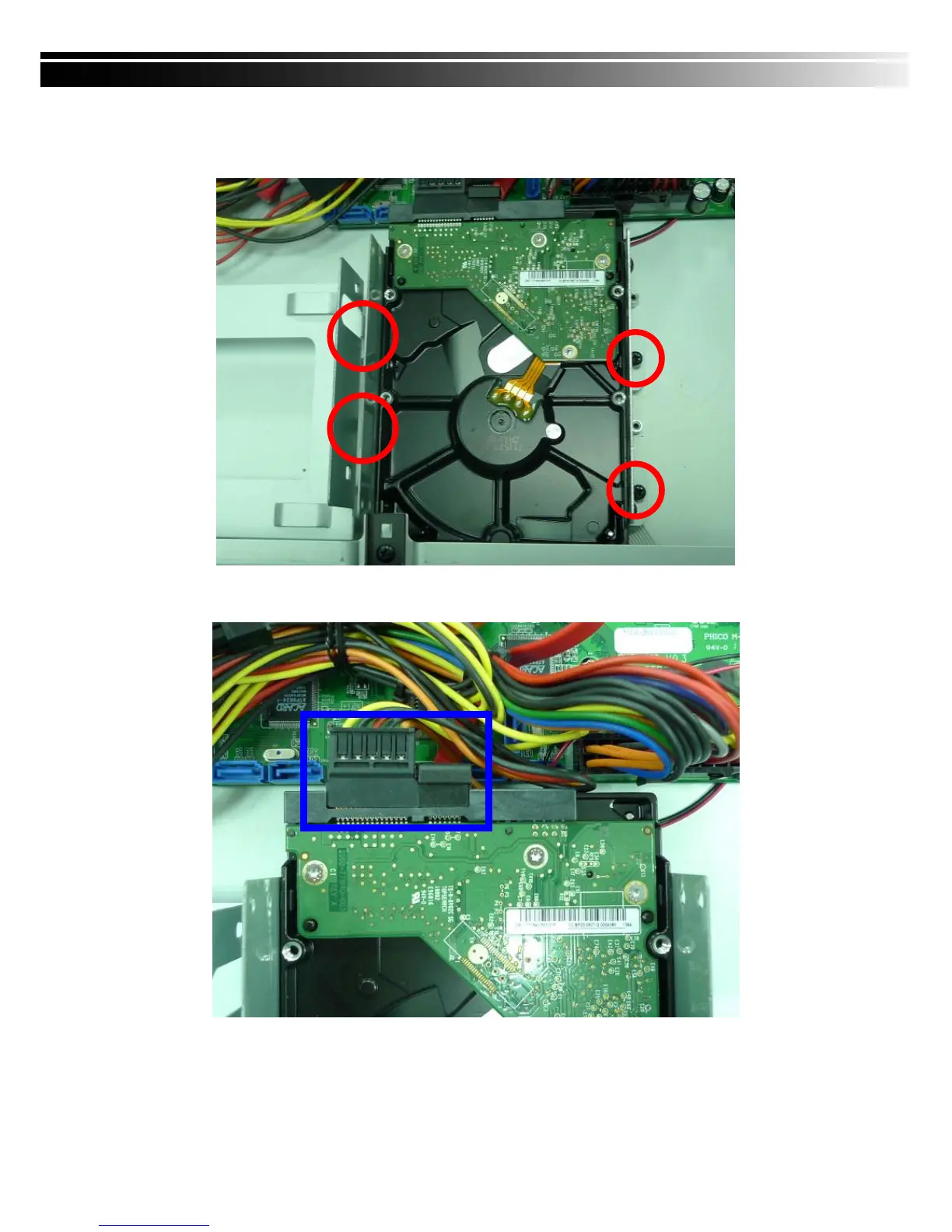 Step 3) Place the HDD on the HDD plate and screw it as indicated.