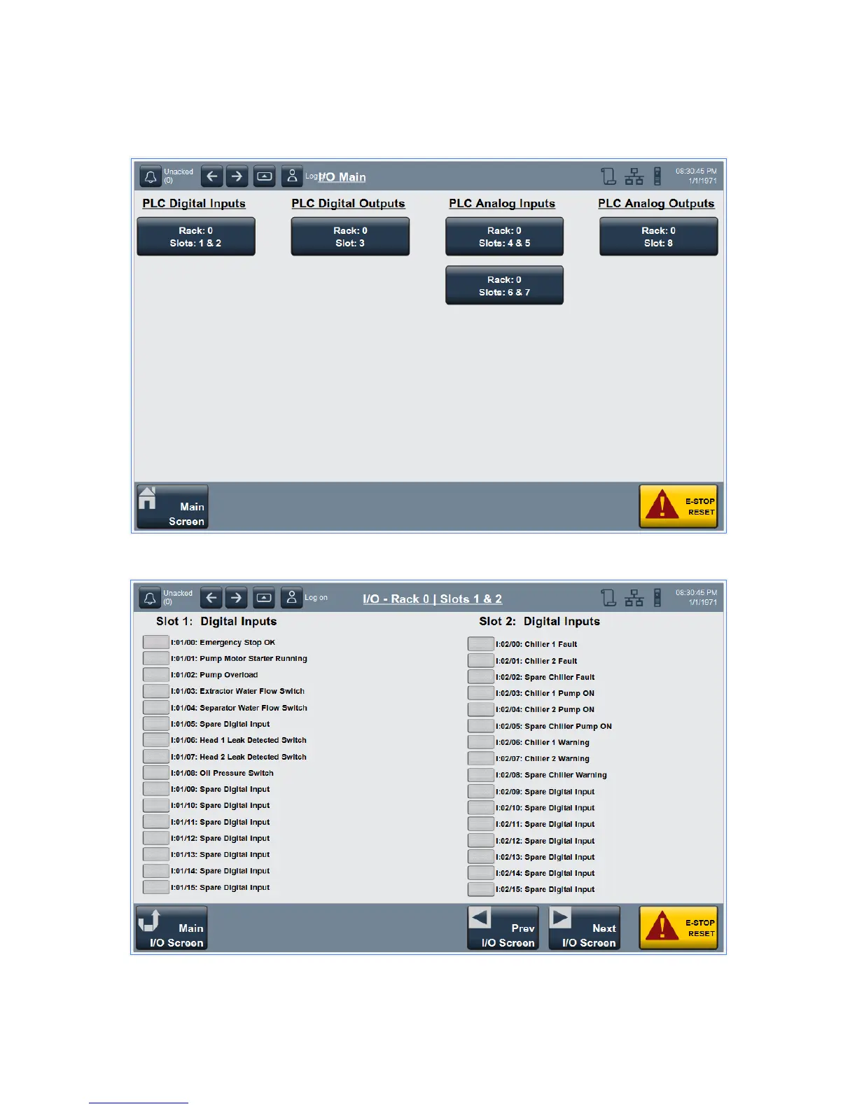 monitor every input and output of the Program Logic Controller (PLC) from these screens.