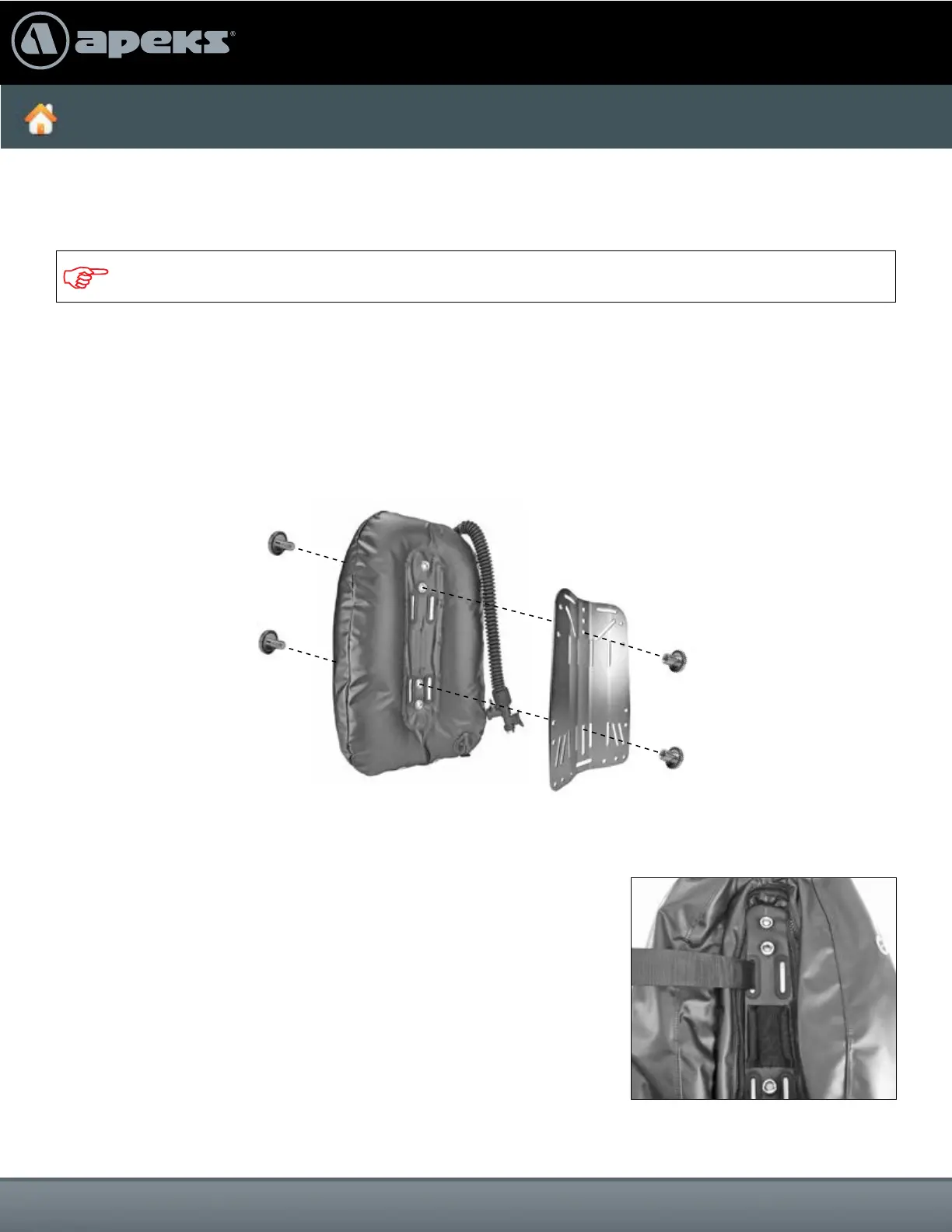 optional 3/8” book screws (PN 388112, sold separately) will help keep the buoyancy cell and backplate