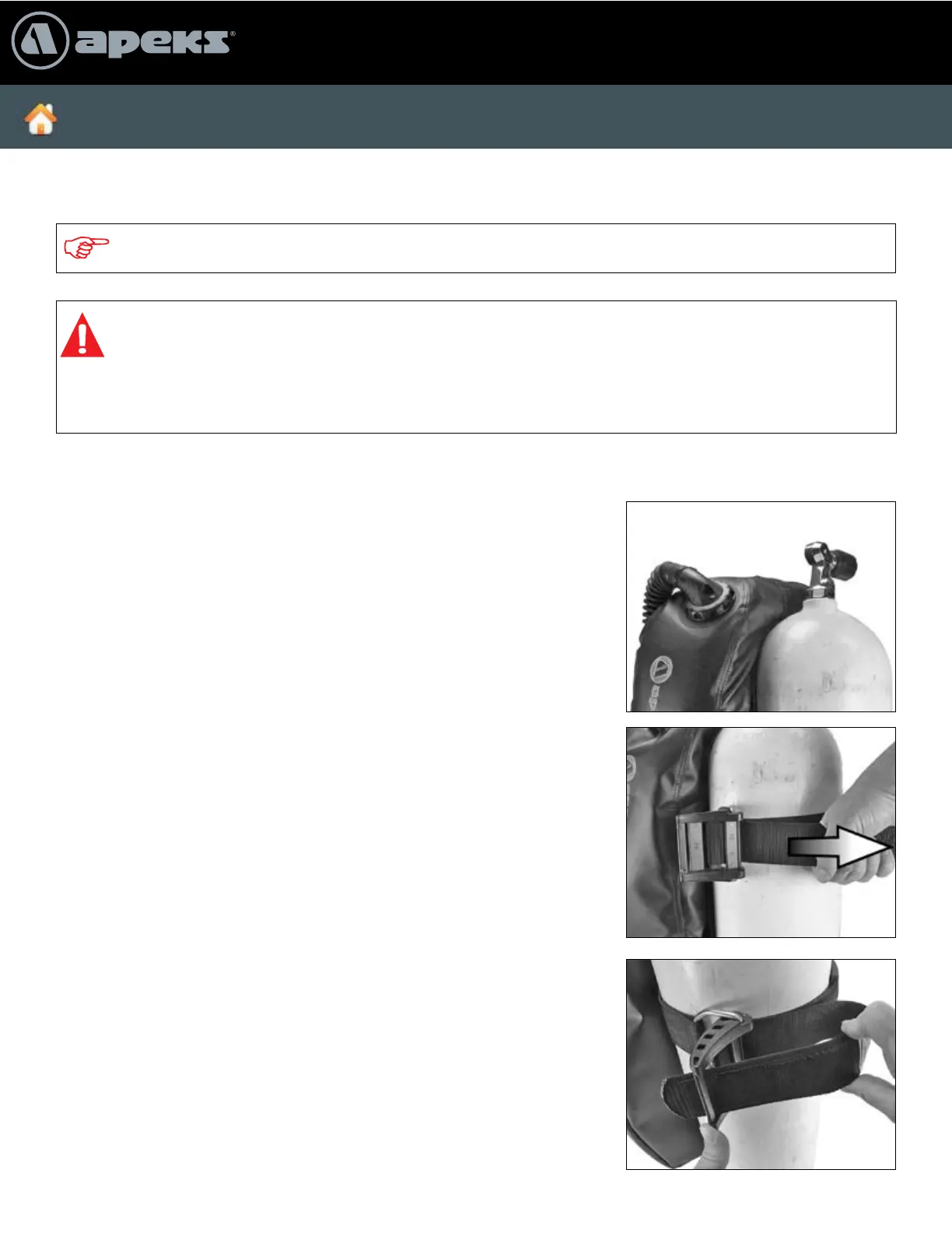 completely secure. Test this connection before every dive. If the cylinder slips free from