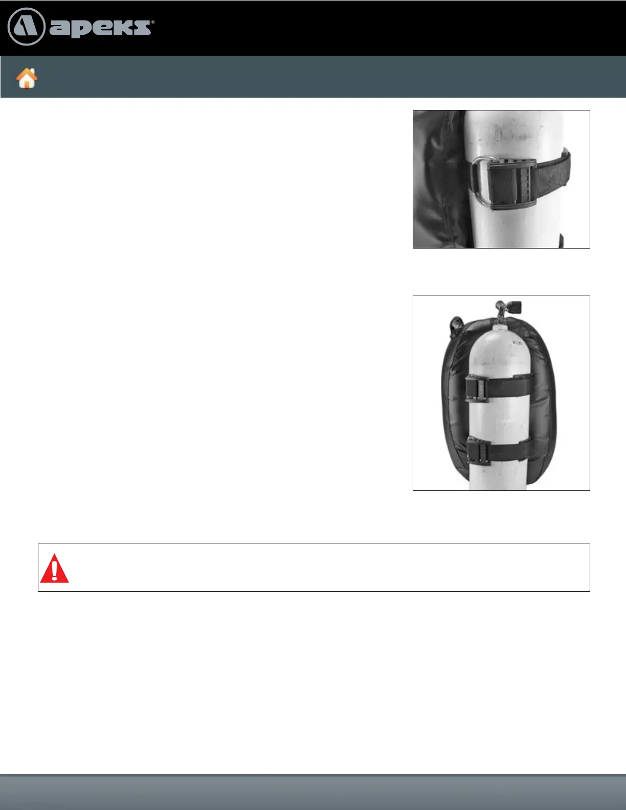 WARNING: Verify the tension of the cylinder band prior to every dive. Failure to do so may