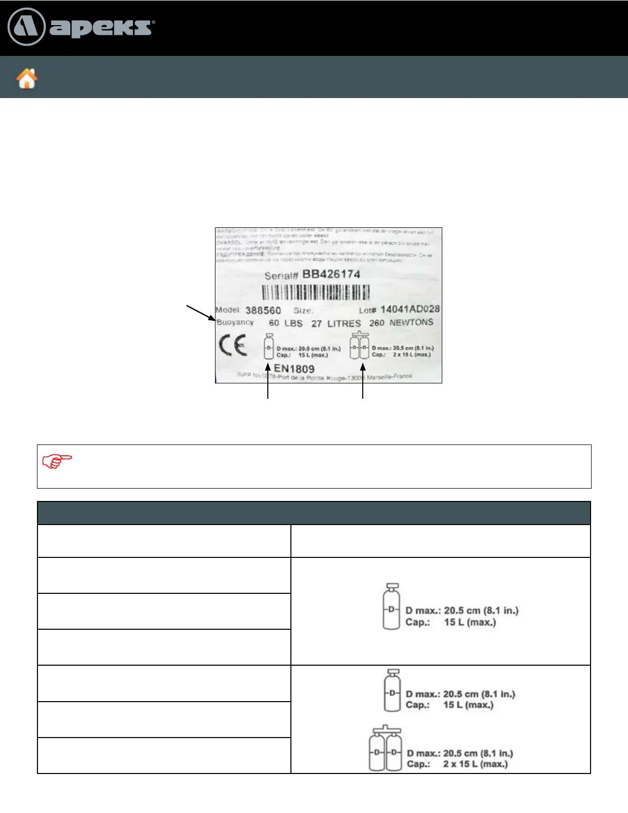 characteristics of your particular model BC, such as buoyancy and cylinder capabilities. It is important