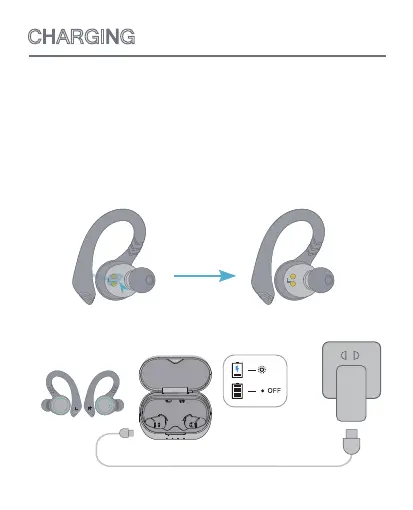 Close fully the charging case cover to charge the earbuds.